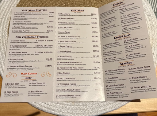 Read moreMy son and I dined in on Sunday evening. This was my first time eating Indian food but it wonât be the last. We ordered the Deal for two which was a perfect way to try a few different dishes. We had the Chicken Tikka for entree which was a perfect starter. For our mains, we had Bombay beef and Chicken tikka masala which were both recommended by our host. Both meals were bursting with flavour with just the right amount of heat. We also received a great sized serving of rice and plenty of garlic naan bread to mop up the left over sauce on our plates. We finished off our meal with a mango lassi each. OMG, why have I taken so long to try Indian food??! Food aside, I cannot fault the service we received. We were welcomed with a warm smile, our host was very attentive and happily took us both through the menu and made recommendations based off his own favourite dishes. Itâs a shame we can only give a rating of 5 stars on here because Maa...