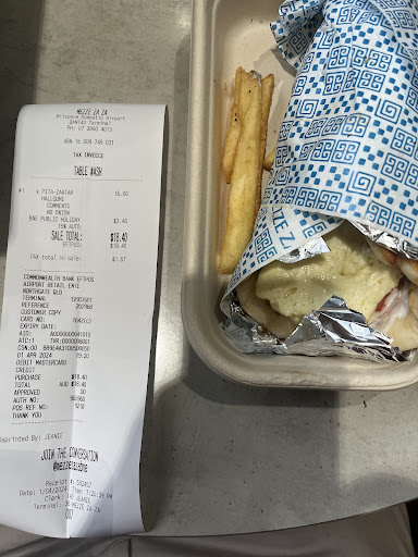 Read moreAirport food....again...redeeming features are all the water we can hope for in this culinary desert. That's what you'll find at this place. The facade has been worked on harder than an ageing actresses face. The poor bugger working here is doing multitasking that would make an octopus weary. It shows on his face, but he puts up a good...um...facades. Importantly, he also makes very good felafel. The rest of the roll is way too thin on the pickled veg. And for the price, more would be fair. But it ate well on the fluffy white carb outer. And we are at an airport, so, when in the desert, be grateful for...