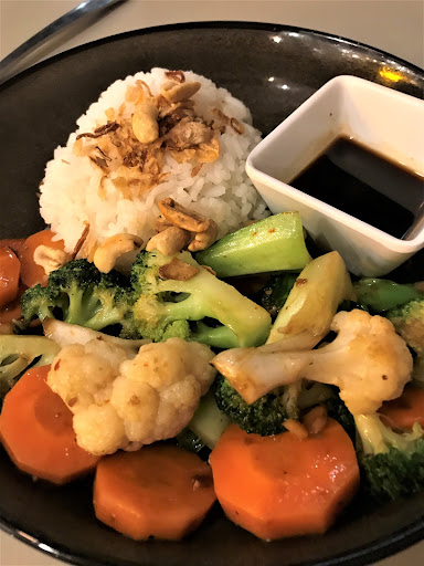 We headed here in early February before the corona shutdown, to try their soft menu. Who doesn't love a spring roll? These were quite large, so it was fairly generous, even though there were only two. I found the pastry a wee bit doughy and the filling a bit bland, but they were still fresh and tasty, and a generous size. We would have them again. (And we did the next time.) Hubby went for the stir-fried veggies, which were sadly like rocks. I don't mind firm veg, but these were very hard, and undercooked. Not a winner, I'm afraid. He liked the sauce that came with the dish though, and would have liked a bit more of it. My grilled chicken thigh fillet was pleasant enough, if not terribly exciting. The chicken was tender, and the rice was a nicely fluffy accompaniment. But the veggies were a bit too crunchy for me, and I felt it needed more flavour. I could happily eat this another time, but I'd like to try other dishes before this one. Hubby went for the special steamed pancakes the next time we went for dinner (just before they went to takeaway and delivery only). They were crispy, they were herby and porky; and the mushrooms added good flavour. (Don't ask me what the translucent squid-like objects were though). Oh yes, hubby tells me they were rice paper sheets, not squid:-) He enjoyed this dish, but he wishes there had been another sauce to go with this, as well as the dipping sauce. I have to say I found this dish a bit confusing. Why were there rice paper sheets on the bottom? Why were the steamed pancakes apparently fried? A conundrum, my friends, a veritable conundrum. I really loved the Special tempura prawns, with pickles and wasabi mayo. The prawns were crunchy-coated, tender inside, delicious mouthfuls. I loved it, and have had this dish a couple of times since. I believe this will be on their full menu when the time is right - post-virus. Overall impression: fabulous and friendly service. The food doesn't always hit the mark, for our fussy and fusty palates. But on the whole, the food is tasty and enjoyable. We have enjoyed their meals via takeaway a couple of times since, so they must be doing...
