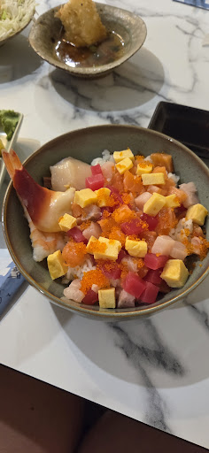Everyone had finished eating by the time my chirachi rice bowl finally arrived, including 2-3 tables around us. To my absolute horror, the chirachi rice bowl was some sort of poké bowl abomination with tiny cubes of fish and tamago scattered through a bowl of rice.