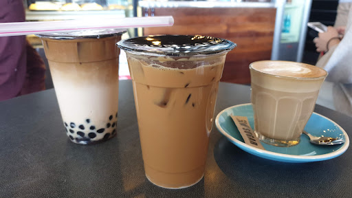 Today, I ordered the iced espresso milk tea with pearls and a latte plus a doppio, but the guy serving didn't know what a doppio was, misunderstood that I wanted three drinks total (i.e., the pearl milk tea, the latte, AND a double shot - admittedly few people in this area order straight shots, and it was a rather ambiguous phrasing), and the resulting bubble tea was watery AF compared to last time....