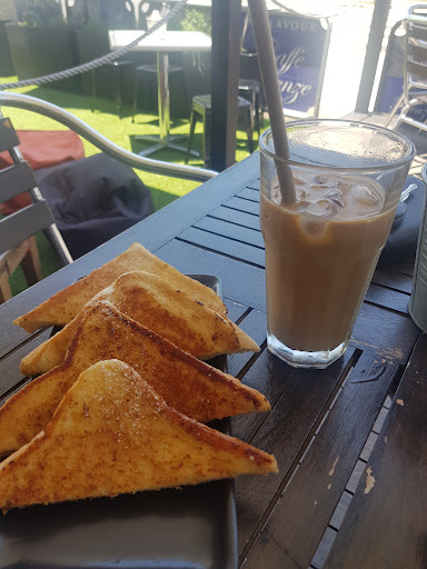 Sat outside at tables, when coffees were ready had to go & collect them from counter..(what? No other customers)
