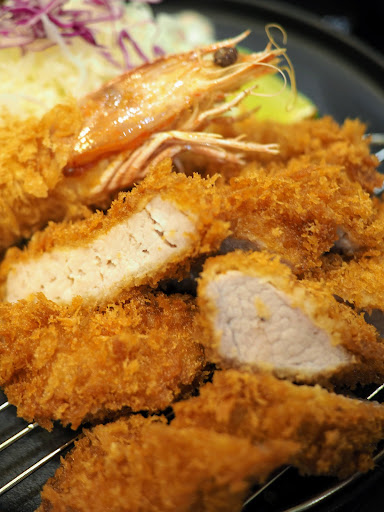 We ordered: assorted katsu meal, $22 - pork loin + pork tender lion + king prawn 1pc; served with rice, salad, and miso soup hire curry, $13.50 - pork tenderloin extra cabbage salad, $2 extra chicken katsu, $8