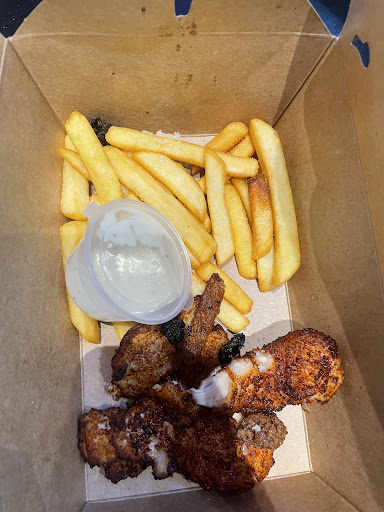 The chicken tenders, tasted good. Unfortunately it seems they were cross contaminated as there were fries and something else that tasted like burnt plastic that appeared to have been cooked with the chicken. The seemingly plastic material in my tender nearly made me tap out to be honest, no way am I about to throw up in carindale food court.