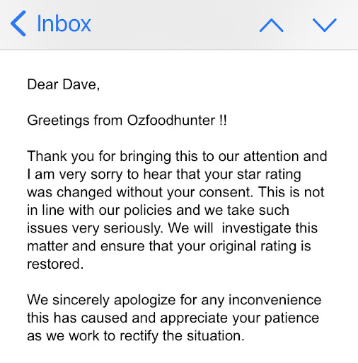 While I get that restaurants can be overwhelmed and these things happen, I'm frustrated that neither the restaurant or the OzFoodHunter make any attempt to keep the customer (me) updated about progress, ETA, etc. And instead, I'm forced to try and ring both the restaurant and OzFoodHunter to resolve the situation and (in the end) cancel the order and...