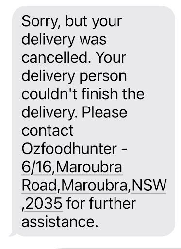 Total mess. Tried to order and the site said it wouldn't accept my card, despite no issues, so I tried to order from another place also via ozfoodhunter, and everything went through fine that time - screen popped up that said it had gone through and my order had been received. The order never arrived, but when I went to check the first order was still there as pending and the second order didn't exist. Called them, and had massive trouble hearing over background noise and constant beeping, person said they'd call me back and didn't, I called again, same thing.