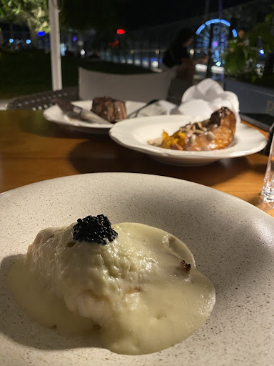 Our baguettes and salted butter arrived shortly after placing our order. The bread was warm, crispy, and yeast. The butter was light, and savory. This was a great start to our meal. The prawn crumpets came out next. The dish was a feast for the eyes. Delicately chopped prawns mixed with a dash or mayo, lemon, and caviar. It simply tasted like the sea. I was really pleased that we ordered it!