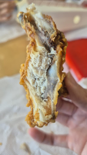 After driving 20 minutes back home, I was shocked to find that the box contained only 4 pieces of chicken and 4 unexpected wings, instead of the 6 pieces of chicken I had originally ordered. I don’t believe this was a simple mistake; it feels more like I was cheated. Additionally, the unexpected wings tasted weird.