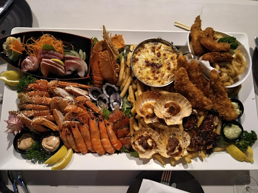 In Australia many restaurants use a QR code system to place an order. Being my first time at this restaurant I had no idea what I was meant to do. The waitress for who welcomed us didn't do a really good job of explaining and I was left confused for abit even though we did tell her this was our first time here. After looking at the menu we decided to order Asahi batters fish and chips. The presentation was definitely top notch and very professional. However the batter that was used was a tad bit bland and needed alot of the tar tar sauce on the side to help enhance the flavour. The second dish, Grill Seafood manay was abit disappointing. We were expecting a variety of seafood but the only protein was fish and some prawn. Where were the mussels and clams? The final dish for the night was the Tasmania Grill salmon with chip and lemon butter sauce. The dish was average and it tasted exactly how it sounds. The salmon, even though the main component was bland and could have used some more seasoning during cooking. The lemon butter sauce helped a tad bit but that was that. In total with the drink we spent around 100 dollars for our entire meal food and drinks a moderate price for a seafood restaurant.