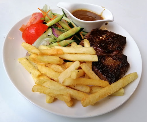 I ordered the rump steak with gravy. It was well cooked, the way I like it with a nice serve of crunchy chips and a nutritious and colourful side salad. My wife's sirloin came with BBQ sauce, which added a nice tangy flavour to the meat.