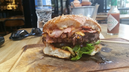 s, very cool. With so many Burger joints popping up now, its refreshing to see a place that stands out far from the rest and totally delivers not... Read moreI would actually give it 3.5* but you cant do it. The South African lass that served me was great as was the rest of the staff. Sitting at the table it was alarmingly sticky and the staff assured me it was clean and was a problem with all tables. It was clean but please fix this problem as apart from ordering it is customers first experience before food and just doesn't feel right. Got the mighty bacon and cheese. Homemade patty was good although I think you guys could cook them a little less. There was also a bit too much bacon and it overtook all the other flavours. I am from the school that everything tastes better with bacon but you can have too much of a good thing sometimes. Take about 1/3 of it off. I find a lot of the different style of buns a bit perplexing as I think the old school toasted white bun is just simply the best. My only real gripe with the burger was how the bun started to fall apart about 1/2 way through it and made it a real messy finish. Hands were way too greasy to pick up phone to take a pic. Just wish burger joints would make their buns a tad wider with a little bread overhang so as to keep it together longer. Overall though it is a good tasty burger and experience, but...