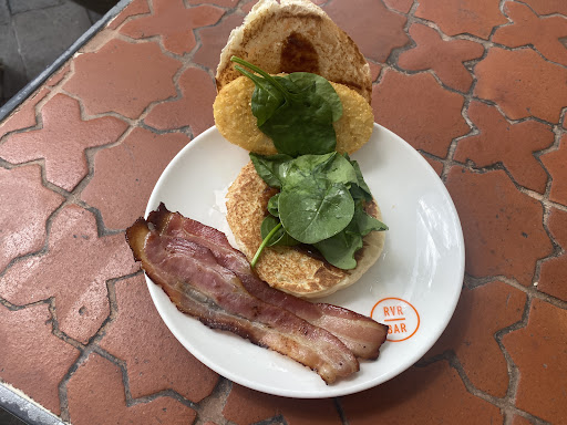 Not busy. Sunday morning 08:45am. We were a party of 4, I ordered on the QR code and the others ordered at the bar a few minutes later. The app said 15min wait. Their coffees and food arrived, and my breakfast burger arrived a few minutes after. I asked at the time about my coffee which hadn’t arrived and was told it was coming. I looked at the burger, and opened it, to see there was no egg. Checked the menu. Went to the bar to let them know. The person asked what table I was on, and by then the waiter was right beside me and said “Oh, I was just there. Number 7.” The person said they’d go get my egg, and I mentioned I was still waiting for coffee. The waiter said “yes, I’ve done that.” And waved vaguely at my table. I returned to the table, and there was no coffee. The same burger was returned to me, with an egg, and I asked about the coffee. “I thought you said you’d delivered my coffee?” “No. I checked the order. It’s coming soon.” Everyone else finished, and I ate slowly waiting for my coffee. Halfway through, I went back to the bar to ask. By now it was 45min since I placed the order. “Sorry, the queue is backed up.” “Okay. But I ordered 45min ago, and my breakfast is cold now. There was a mistake on my breakfast order too, so I’ve come back twice now.”
