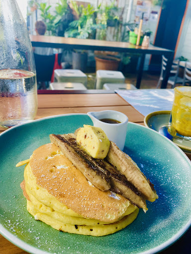 The menu was alright, we ordered a smoked mushroom and eggplant with 2 coffees and one slice of cheesecake. My partner added a hash brown to his smoked mushroom and I added a poached egg and a serving of hollandaise on the side. I did wish there had been more options on the menu. I thought the smoked eggplant was really beautiful and so tasty. It is a very tricky ingredient to work with but they really nailed it. It wasn’t undercooked and was very flavorful. It wasn’t mushy either. It still held its shape and the texture remained. Not too salty either, which I really appreciated. And the pomegranate scattered on top was a really good idea. It really spiced up the whole dish. In general, that dish was executed really well. As for the smoked mushroom, my partner really loved it. I had a little bit of the dish and thought it was nice. I specially liked the sourdough and thought it tasted really organic, the feeling you get when you have real sourdough. The tangy sensation. He also really appreciated the fact that the mushrooms were smoked for real instead of liquid smoke, which gave it a natural and very faint smoky taste to it. There were other dishes I would like to try next time we go, the corn fritters and hot cakes. I didn’t order the corn fritters as the pic on the menu threw me off a bit and didn’t look as nice as the real thing. So I missed the chance. The hash brown was just gorgeous, prob the best I have ever had. It came out really fresh and crispy and in a fairly good portion.It wasn’t too greasy either, which I really loved. And it was seasoned just right. The cheesecake was heavenly. I am a big fan of baked cheesecakes and I thought it was really well done. The rhubarb was a really nice touch and elevated the flavor and taste of the cake. The cake was light and not overly sweet. The skinny cappuccino I ordered was awesome. I LOVED the chocolate on top. I was actually a bit disappointed when it was served at first because I didn’t see any real chocolate until I had the first sip. Oh man, that was prob one the best skinny caps I have had.
