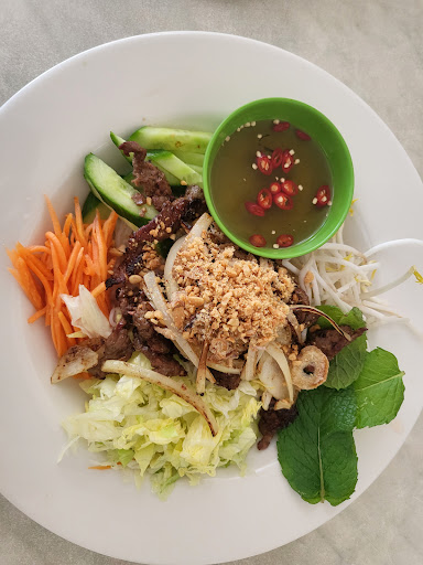 Met a gf here for lunch. It was a bonus I got a park on the same street as the restaurant. Be mindful because it is a 2 hour limit. This was sufficient for our purposes. We didn't have a booking. This is a stand alone resturant which could potentally be mistaken for a corner store from the street. The A frame offering fish and chips and what looked like a takeaway hot bar (not in use at the time) might have confused me if I hadn't read prior reviews. I came to try the vietnamese food but love how they have that option as well - why not. We were greeted shortly after looking at the menu and got to choose from the available tables inside. There were other diners but otherwise, it was relatively quiet compared to the available tables they had. We were offered cold water and given sufficient time to look at the menu. The attentive waiter came back at an appropriate time to take our order. I ordered the beef vermicelli noodles with fish sauce. I asked for fresh chilli & was given a decent amount - happy days, no extra charge. The meals didn't take long to arrive and were freshly prepared. Mine came with giant mint leaves. The beef was well seasoned, which I appreciated. I was also asked if I wanted chop sticks, which was nice of them not to assume I didn't know how to use them. I took up the offer and the lady brought some without delay. Come and support this family run business which offers good food and great service. After lunch we let our food settle by taking a scenic walk by the river...