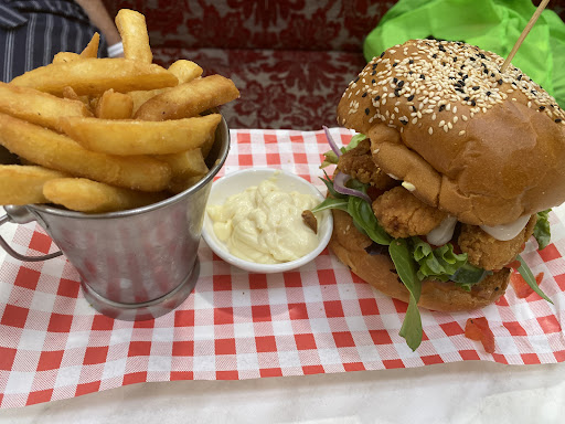 The three stars is for the extremely mediocre food and drinks. I ordered a fish burger and hot chocolate. I think the hot chocolate powder is weak to begin with as even after loading up my hot chocolate with more powder, it still tasted like hot milk.