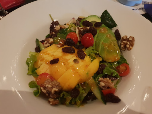 The food was absolutely beautiful, My husband has Stake, salad and veggies with a wine sauce.