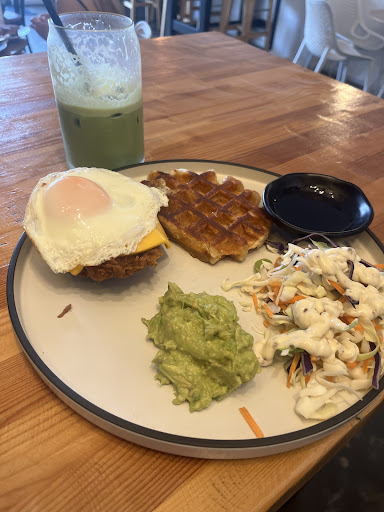 At first I was worried when Maroon 5 were playing as we entered but I am coming to terms with the fact that though I dislike their music, they have been a popular band for many years. Huge and tasty serving sizes. Nice customer service that wasn't over the top or contrived. Perfect piccolo. Sweet and refreshing Iced Chai. Spanish omelette was muy bien. Truffle scramble was resplendent with ample truffle flavours lashing the tongue with unrestrained fervour and a rocket with parmesan side that balanced the scales on your palate to declare justice for all taste buds. I have seen reviews criticising the toilets. Personally I go to cafes for the food, coffee and ambience, not to bask in the wonder of their latrines. My wife and I both used said lavatory and you know what? It functioned correctly and disposed of our waste more than adequately. There was a vacuum cleaner in the room, but it was a decent Ryobi wet and dry model which I believe would more than do the job. It is no longer in the room as I felt it was so good I should have it myself. I look forward to trying to get it on the plane home with me. (I didn't actually steal the vacuum cleaner for those wondering and playing along at home). All in all a great spot for a bite and coffee, with adequate toilet facilities if you do need to...