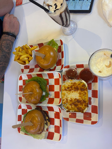 Read moreWow! Partner and I just finished eating and we can't wait to do it again! The atmosphere, music, service were 5 stars all the way. The gentle man who served was right on the ball and turned out to be one of the owners. FOOD.. absolutely incredible! Before you think oh another burger joint pft NO! The food was just fresh and delicious and so accommodating to my allergies. We ordered The classic sue burger with onion rings and areo milkshake and the vegetarian burger with the maple fries with malteaser shake. My burger ( vege) was so amazingly good hit with perfect amount of sauce and salad so you can eat it without wearing it and th plant based Patti was actually really really good and normally dis like them. But the maple fries.. I never tasted anything like them! Coated in a smoke maple sauce and no it wasn't sickenly sweet, Strachan mayo drizzle didn't burn my gob off just a nice polite hum( I removed the bacon cause vego). The shakes were so good we got 2 to go as well. All in all great place, really awesome staff, kitchen very accommodating, owners great food to waffle a bout till the end of time. Most importantly does it give you bang for buck... HELL YES! Food was greatly price and the portions were quite on the larger side. To boot they came around at the end of our meal and offered us refreshing towels I AM...