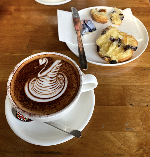 I discovered this attractive but unpretentious caffeine oasis a couple of months ago. The combined positives of the friendliness, efficiency and special attention to small details in their service overall has made me a lifetime patron. Beautiful, hard-working staff. The barista is a real cool dude whose Campos espressos are consistently smooth, rich and aromatic. And the wide selection of reasonably priced sandwiches, wraps, sweet breads and savory pastries are all lovingly created there. Their breakfast menu boasts freshness, originality and artistry, enhancing the overall taste that lies smack in the middle of the "Goldilocks zone" of my pampered palate. The light-tasting fruit/chocolate muffins sell faster than hotcakes. It also helps that it's almost on the way to work, albeit an insignificant out-of-the-way detour, and there is ample off-street parking in front and behind this...