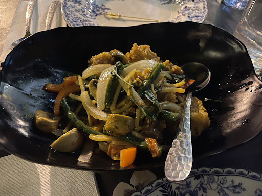 The two ladies waiting on me were great. It felt as if I were in Thailand, nestled away in a fancy Thai restaurant. My meal came out and it was lovely. Served on a traditional Thai plate accompanied by chopsticks. My drink was served in fancy glass with an umbrella on top.
