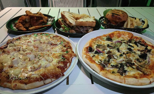 Very disappointed with this establishment at so many levels. The service was poor as the service staff at the counter had no idea about the size of the burger when asked. He just shrugged and gestured a size to use. Wasn't very friendly and look like he just wanted to get it over and done with. Ordered 5 items to share. The magic mushy pizza, buffalo chicken pizza, large bourbon dry rub wings, steak sandwich and hawaiian chicken burger. Only 1 out of 5 dishes were decent which is utterly disappointing. The following dishes were a disappointment: