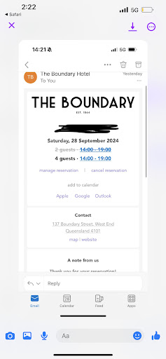 Read moreAfter my experience at the boundary hotel written below, manager Paul reached out and performed a full formal investigation. The care and time that he put into this case really changed my opinion on the business. I really appreciated my review being taken so seriously and seeing that it was used to help improve the business.