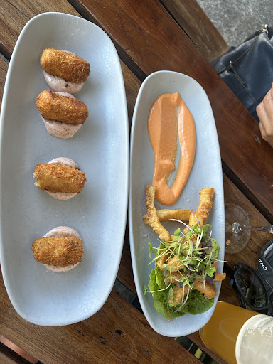 Atmosphere: The venue offers multiple dining areas, including a rooftop beer garden that would be pleasant in summer but chilly in winter. We chose to sit downstairs in the narrow outside area of the pizzeria, which had a relaxed and laid-back ambience. The acoustics were good, making it easy to have conversations. However, it was a bit cold despite the heaters placed on the walls. The decor had an interesting industrial style with high brick walls, stone floors, and steel furniture. The seating was comfortable, and the table was spacious enough to accommodate our drinks and dishes. The only downside was the poor lighting, which made it difficult to read the paper menu without a phone torch.