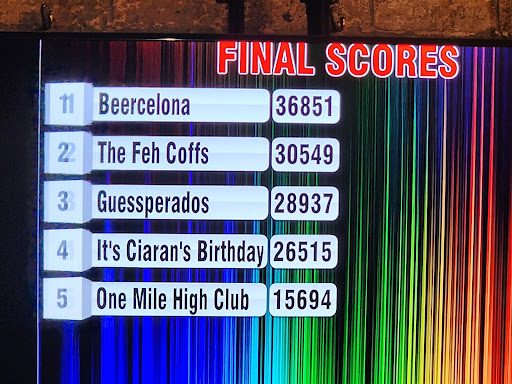 Five teams battled, the staff played too, With “One Mile High Club” naming their crew. A thousand points just for a shout, (A good trick to keep the Guinness about!) But the lag on the telly? A hullabaloo! 📺⏳