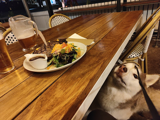 I completely understand that outdoor dining areas come with challenges, especially in a popular area like South Bank, but some simple fixes could go a long way. Regularly pressure washing the concrete, deep cleaning the outdoor furniture and replacing or at least thoroughly cleaning the umbrella canopies would really improve the overall vibe. Right now, it gives off a bit of an unhygienic feeling, which is unfortunate because everything else, food, service, drinks, and location is top notch.