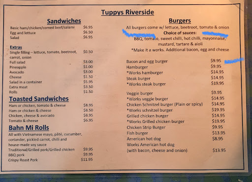 I felt I’d been cheated on the price and food I had this morning. I ordered a Bacon and Egg Burger, it’s $9.95. On the menu, it’s clearly said all burgers come with lettuce, beetroot, tomatoes and onions. But when I got the food, no veggies at all except bacon and egg in the burger. (Please find the attached photos) I brought the food and went to the lady owner and asked why. She said because all Australian in general they don’t add veggies in the burger, and if I want to, I should’ve requested…. Then I said , well, this is not what it’s said on the menu, and I come here first time for a breakfast, it’s not my responsibility to know your rule. And in general, I expect my burger to be what is said on the menu. But it turned out to be nothing but bacon and egg…. I felt I’m exploited. The lady owner just kept apologizing without doing any changes while she was busy with other customer’s order at that moment. The lady owner didn’t think about to make a compensation or give the money back. As I was in hurry, I just left the counter and went back to the dining table and finished the burger.