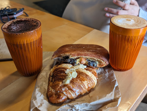 Yesterday, I visited this coffee shop and enjoyed a flat white and banana bread. The flat white was well-made, but I was disappointed that single-origin coffee beans were not available for espresso, as only a blend was offered. The banana bread was decent, but it was served pre-cut and roasted with butter applied directly. I believe the butter should be served on the side for a better experience.