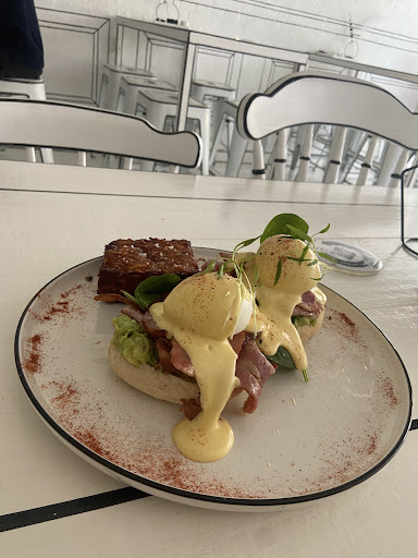 Read moreAs a creative, I had to check this out and I have to say I love the 2D look of it all. When we arrived the upstairs was closed so we sat by the window. My friend felt like we were on display which was pretty funny. We ordered the brunch board to the counter but you can order the other items on the QR code from the table. I think we had about three of the staff ask us if everything was ok and it was great they offered the take away at the end when we couldn't finish. They opened up the upstairs area later when it got busier. Try not to order the brunch meal if you chose the small table as it would be a struggle to fit everything in. Would have to say that maybe prices have gone up for food now as the menu felt more expensive. Definitely a treat to go and check out 😊. The closest secure parking is McWhirters but it's $20+ just to park. You're better off checking McLachlan street for street parking which has up to 4 hours metered parking at just under $10. Their menu, (which I have to say as a designer) could have been better if it wasn't in comic sans 🥲 because their atmosphere and their logo have more of a mature vibe from the...