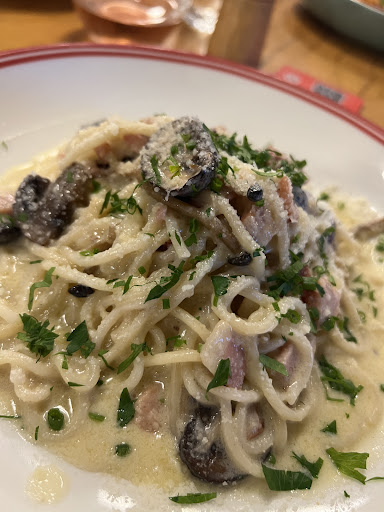 We then ordered our food and drinks. Waited around 30minutes, which we still weren’t served anything. Not even a drip of table water. We asked for water and how long it’ll take for our food/drinks cause at this point, everyone who ordered after us had their food/drinks served to them already. 40 minutes in, we were served our drinks. I ordered a Marco Polo (non alcoholic drink) which tasted like water and apple juice and my friend ordered Pinot Noir which came with a side of chipped glass (I mean how dangerous could that be right if someone digested glass or cut their lip while drinking, who knows). 50minutes rolled over and still no sight of our food, called the waitress and asked if we could just cancel our order at this stage cause the waiting time was just ridiculous. She tried checking for our food and made her best effort to get our meals out as fast as possible which I was highly appreciative of since it was not her fault at all. At this stage she was panicking and called the manager. Guess what he did, he said “drinks would be on us so you don’t need to pay for it and we’ll get the pasta out quickly”. Dude paying for our meal wasn’t an issue at all. It’s the lack of customer service as well as managerial skills of maintaining a restaurant and training your staffs (where most of them didn’t know what to do. Had the table beside us served pasta and the customer asked if it was Bolognese, the waitress looks at them clueless, looks at the dish and ask bolognese? Hilarious). If your restaurant is going to promote a bottomless pasta deal which runs every Tuesday, Wednesday and Thursday, knowing how many customers there are just from reservations then you should prepare and plan ahead with how many staffs you need on deck, who should take care of which area, etc.