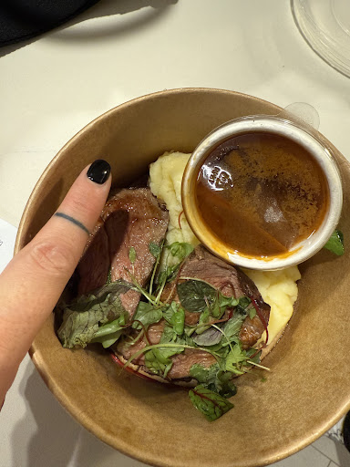 The mains arrived at 8:50 PM—about an hour after we ordered. My steak was lukewarm at best, though the mashed potatoes were decent. My partner’s dish was okay, but nothing memorable. Dessert followed the same trend—fine, but uninspiring.