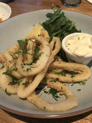 What to do on a wet Saturday evening? Head down to the local village for a drink and an early dinner with a friend. We sat inside (there is a large deck out front too) at a table, though there is a bit of bar seating. I liked that there were mixed groups – families with small kids, couples, friends, everybody welcome. Service was prompt and very friendly. You order at the bar, and food and drinks are brought to your table. I had a French rosé, the Princess had a Sauv Blanc, and hubby had his usual ginger beer. We shared a few dishes – polenta chips with parmesan and black truffle aioli, crispy fried squid, buttermilk chicken goujons, and halloumi wrapped in prosciutto. The squid was not quite as crispy on the outside as I like, but still delicious. The chicken goujons were tender on the inside, and crispy outside, and came with a flavourful chipotle aioli. We all loved these. The halloumi came with smoked honey and onion jam, which was sweet and tasty. Hubby loved the polenta chips, but I was not so keen. They didn’t have much flavour, and were quite tough, rather than having a squishy inside and a crisp coating. I also didn’t detect much (any?) parmesan. We shared two desserts – elderflower crème brulee and Bailey’s semifreddo – both sweet and creamy and moreish. And so we stayed on, with a prosecco for me and the Princess, and another ginger beer for hubby. A very pleasant way to spend a couple of hours, and we...