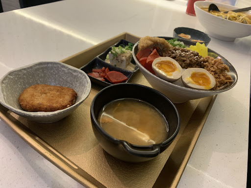 Read moreA fusion based restaurant that does mostly Asian food (but also chucks in a lil bit of Italian), such as rice and noodle dishes. We got the skewers, spicy beef noodles, and the chicken karaage rice bowl I would say that the skewers seemed a little bit too overdone so they were a bit dry and crusty, but still ok. The noodles (we got medium) were absolutely huge, but decently made and a good texture (you can choose the type of noodle you prefer). The chicken karaage rice bowl was delicious!! I’d say there was a bit too much of the batter on the chicken and a bit too much rice but other than that, the combination of the eggs, chicken, sauce and other toppings was great. The chicken was also cooked well- tender and soft! The side with the tofu and quail eggs were also a nice surprise, with the sauce of the tofu being quite nice too. The presentation was great and I’d highly recommend.