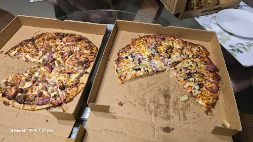 Instead, they hadn’t made anything, and when I asked if we could just get the regular large pizzas, they said we’d be charged an extra $3 per pizza. After waiting over an hour with no food, no update, and no real solution, that was pretty frustrating.
