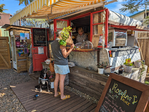 We walked past with my partner when we went to the beach and i said we have to come here. I met up with a friend who comes to the beach often and had never been here so perfect opportunity. Cute menu and enough items on it. I had the beetroot and quinoa burger, i was not a big fan of the buns, but it was tasty. I also would of taken the chips out of the frier just a bit earlier, but that is just me. Breakfast menu goes all day long, my partner had the bacon and egg roll and he liked it. We had the blueberry ice cream and the mango/passionfruit smoothie. It started raining heavily when we were there, but i liked it. Enough shade to keep food dryish plus was really nice under the trees and was very refreshing. Friendly service, they moved the music closer to us and my friend Shazammed couple of songs. Beautiful and quircky little place plus prime location, just a few meters from the beach. They gave us a few doughnuts. I perdonslly would make thee donuts filled with ja or cream et cetera. Can't wait to...