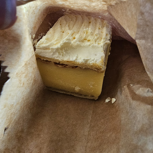 Read moreNot what it used to be, I'd rather pay more for quality than comprise.Unpleasant. Firstly, the worst Vanilla slice ever, it tasted like fridge water not even vanilla. What should have represented vanilla egg custard, was, I'm sure, water with egg yellow cochineal set with gelatin or possibly cornflour. I dropped it in the river and it sunk quickly not even breaking up. The pastry wasn't flaky and the icing was thin and not smooth more like sugar crystals. The caramel tart was the hero, the caramel lovely and case was equally as nice. The caramel chocolate slice was ruined by thick tooth breaking cheap cooking chocolate and the base tasted burnt over buttered crumbly in parts and firmly dense in others. The cream bun was stale like, not light and fluffy, the cream was like that American cool whip or a type of mock, it had a nice cinnamon and fruit component and...