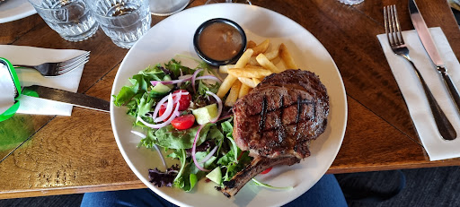 MAINS Griddled Grass fed Black Angus 400g Cattleman’s Ribeye on the Bone chips, salad & your choice of sauce
