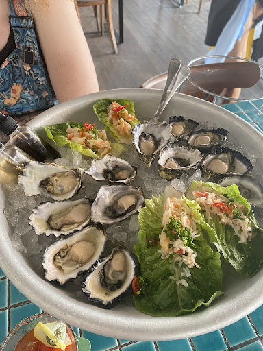 My daughter lived in Byron for a few months and recommended the Balcony as one option locally,central location,very tastefully decorated,lovely spot and we had great anticipation for a delicious dinner,the half priced oysters caught our eye so we ordered a dozen at $36 says normally $72, as part of their Oyster Fest 2025,Ha! not cheap at all no bargain from the restaurant that had staff walking around in Oyster bar and Co T-shirts .We weren’t super hungry after a later than usual lunch so that seemed ideal,well we could have done better from Coles,frankly the oysters were very small and ordinary and hadn’t been properly removed from the shell for easy eating ,we downed those then decided to try the salt and pepper calamari,well theywas even more disappointing than the oysters,it seriously was like the chef had decided to serve us what was left in the frying basket,we ate it as it wasn’t cheap at $26 (as a share plate) it wasn’t a normal one person serving and I’ve had better at just about any pub in Australia.We dined at a seafood restaurant at Mooloolaba not that far up the coast and had delicious and beautifully fresh everything at pretty much half the price, for $60 per person we had plump coffin bay oysters and a huge and delicious platter of beautifully cooked seafood,including the best scallops perfectly cooked,so what we received at the Balcony left us feeling totally conned.Some of the staff were good,not all,seemed more interested in chatting ,no big deal just an observation,wouldn’t go back unless the Balcony lift their game substantially and stop assuming customers are mugs.Disappointed is an...