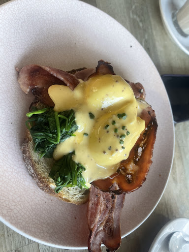 The hollandaise sauce didn’t taste fresh and had a slightly unusual flavor, which took away from the overall dish. The poached eggs were cooked medium, which was okay, but nothing particularly special. The coffee was decent and probably the most satisfying part of the meal.