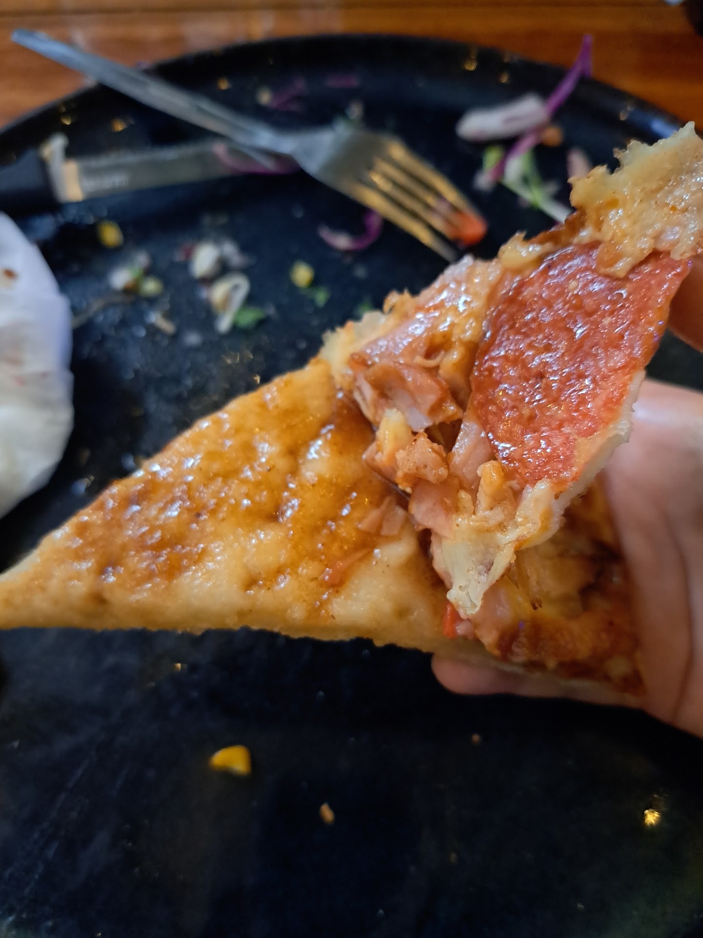 We did not have high hopes for the food but were hungry so over-ordered (or so we thought) but we ate up absolutely everything. The pizzas came out quickly and were a hit. Far superior to pizza we had a few days later from a dedicated pizzeria down the road. Had to stop ourselves from eating it all and getting full before the rest of our food came out. The full rack of ribs and the steak were 10/10. My brother lives for steak and he said it was one of the best he’s had not homecooked, the mash was also a standout; so buttery and so good. Ordering Thai Beef Salad and Fish Tacos at a bar is gamble that often doesn’t pay off but they were also very delicious here. Better than fish tacos I’ve had at some bougie cafes and rivaling some Mexican restaurants in Sydney. Our loaded fries also hit the spot big time. The only dish that could’ve been better and didn’t join the clean plate club was the buffalo wings. But overall an incredible meal. The big beers were also a highlight!