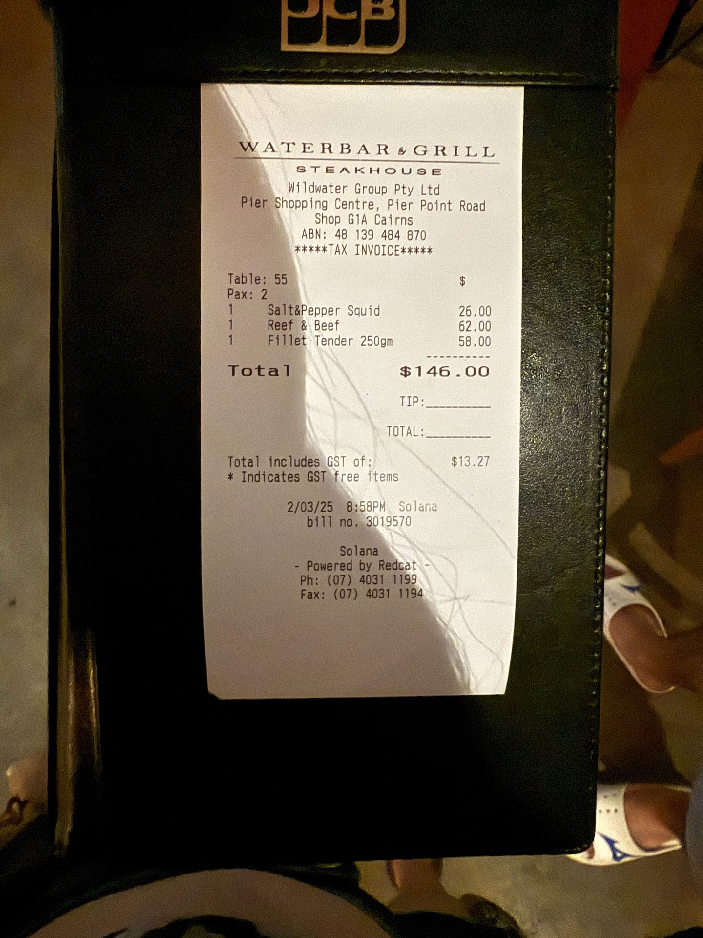 A couple of weeks ago, I pre booked a reservation for my husband and I wedding anniversary dinner. When we arrived we were greeted by Georgie/Georgia (sorry I cant remember) and was shown to our table. Our table was in a perfect spot, right at the front with a beautiful view of the marina, so already, our night was off to a good start. Throughout the night Georgie continually checked on us, even asking if we needed more drinks when our drinks were still half full, she was really on the ball. We ordered our meals, and we decided to treat ourselves to a $75 wagu each plus entrees. Our meals were perfection. Worth every cent. After we thought our night couldn't get better, we were offered a free glass of champage to celebrate our anniversary. This gesture to me, shows how much your staff care about their customers, and we are not treated as just another number to get in and get out to serve the next lot of customers that were lining up to be seated. The attention to detail, the constant presence of staff always checking up on us to make sure we didnt need anything else, was just amazing. We decided to order dessert as well, and yet again, they surprised us with just a simple gesture, but really made us feel special, by putting a sparkler on our dessert, and wished us a happy anniversary. We have 2 small children under 2, and we basically never get to have a night to ourselves. We are so appreciative for your staff, especially Georgie who made our night extra special. From the bottom of my heart, thank you. From start to finish, our night was perfect. It is my mothers birthday next week, and we will be booking another table to take her to our favourite restaurant, and BEST steaks in Cairns, or anywhere for that matter. And we've tried ALOT of steaks 😅.