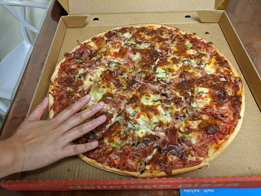 No large pizzas were available so either a small or a family had to be chosen. I ordered a family super supreme, and can I say, being from a European background, I know my pizzas.... When the pizza came out it was honestly the biggest pizza I have ever seen. It almost did not fit in my front seat of car and once I started eating it, I couldn't stop, It really was sensational. HOT, Tasty and straight out of the oven FRESH.