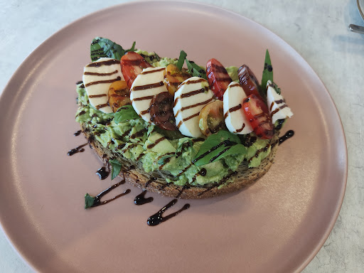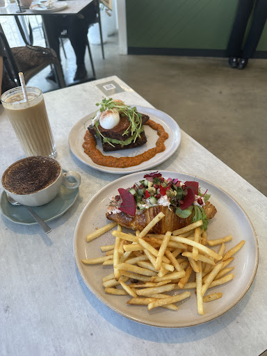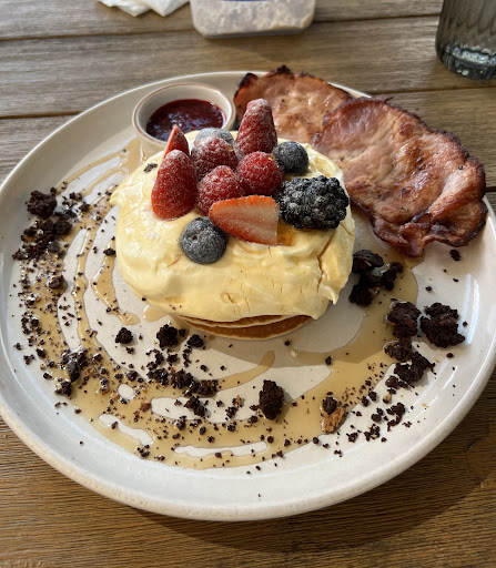 Excellent food! We got the sweet Pancakes (new summer menu - they come with a delicious custard cream đđŒ) and the Mushroom Scramble, and both had an iced oat latte. Everything was to die for and the coffee was really good. The current food menu isnât posted here on Google yet - slightly different to the winter menu. Great atmosphere - we sat in the open-air seating upstairs, great for kids with a little play area. I didnât love their policy of only serving drinks in takeaway cups upstairs - not environmentally friendly and if dining out for coffee itâs much nicer to drink out of an actual cup! Was apparently for safety (no glass on the astroturf) but then water glasses and carafes were allowed đ€·đ»ââïž Also upstairs didnât seem to be accessible for prams/wheelchairs but weâd left our pram in the car so I didnât ask! Overall 10/10 though and we will def be back to try more of their breakfast...