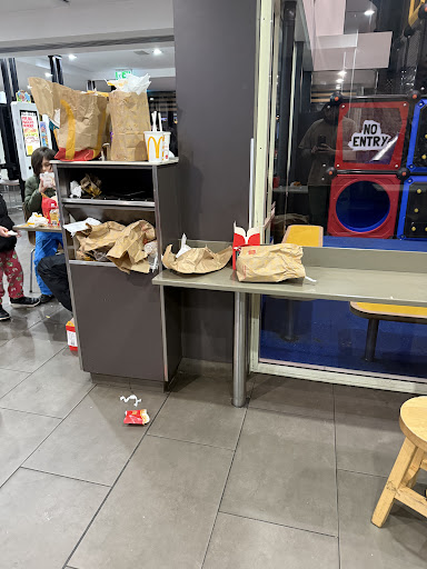 Read morethis is the most disgusting mcdonaldâs i have ever been to. the car park was full of litter, that shouldâve been our first warning. could hardly see through the glass door walking in, it was filthy and looked like it hadnât ever been cleaned. the floors and tables were absolutely filthy covered in food. a crew member/barista was stuffing her face with food fingers in her mouth and then touching coffee cups and making drinks and serving people, disgrace. then to look over to the right and see a large woman with no shoes on, feet that were as black as the road, clearly friends with or a team member herself, going through cupboards helping staff look for things and walking past without her shoes and her uncleanliness and lack of hygiene behind the counter where food is served, still with no shoes on. meanwhile, at the coffee machines, the barista is STILL stuffing her mouth with food, full fingers in her mouth. let it be noted, this was not a short staffed restaurant, there were plenty of people working and serving. needless to say, once receiving the two happy meals we ordered, it was thrown in the EMPTY bins, since all other rubbish was left thrown on the floor of the car park. didnât make it to the bathrooms because if inside the restaurant was that filthy, a hazmat suit was probably needed to enter the bathroom. you know how dirty something is, when you feel sorry for the bottom...