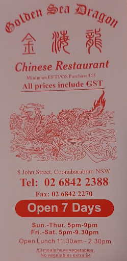 Read moreCoonabarabran is a long way to drive for a succulent Chinese meal, but Golden Sea Dragon is worth the trip. Purpose-built and ornately decked out with vibrant and elaborate decor imported directly from Hong Kong and China, it’s awe-inspiring. The red brick surrounds give way to a vestibule with a circular doorway that frames the expansive restaurant beyond. Carved wooden screens, where spotted deer nestle in a bamboo forest, insulate diners from takeaway comings and goings.
