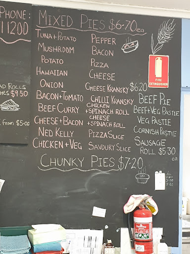 Stopped for some on the road grub and after reading the reviews about their pies was excited. We got a Cornish pastie, Ned Kelly and Plain Pie after the staff stated it was their most popular. The pies were a standard meat and gravy with a thin pastry crust so it kind of falls apart so you have to eat it quickly. The pastie was tasty with chunks of veggies. Great for a quick stop and the staff...