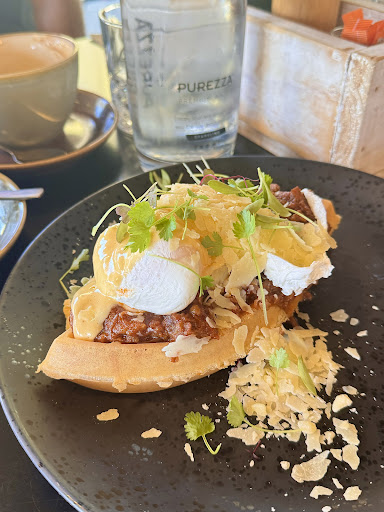 I had the slow cooked brisket on a waffle. Itâs very delightful. So does my oat latte which is the most important. Everyone else enjoyed their food too. Definitely will return to explore their menu.